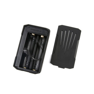 Das Gehäuse aus stabilem ABS und Polycarbonat ist für das leichte Gewicht des Mod’s verantwortlich und vermittelt eine gute Haptik. Ohne Batterien und Verdampfer wiegt der Invader lediglich 75.5g. Auf der einen Seite ist das Cover abnehmbar und wird mit Magneten festgehalten. Darunter ist das Akkufach mit Platz für zwei 18650er Stromzellen.